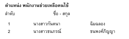 ทั้งนี้ ให้ผู้มีรายชื่อผ่านการคัดเลือกไปรายงานตัวเพื่อรับการจัดจ้างเป็นลูกจ้างชั่วคราวเงินบำรุง(รายวัน)ที่กลุ่มงานบริหารทั่วไป โรงพยาบาลบ่อพลอย
