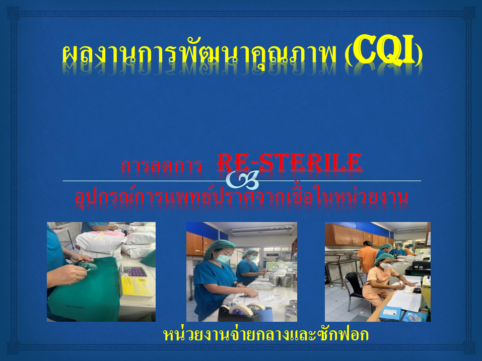 กิจกรรมพัฒนาคุณภาพ เรื่อง ลดการ Re-Sterile อุปกรณ์การแพทย์ปราศจากเชื้อในหน่วยงาน