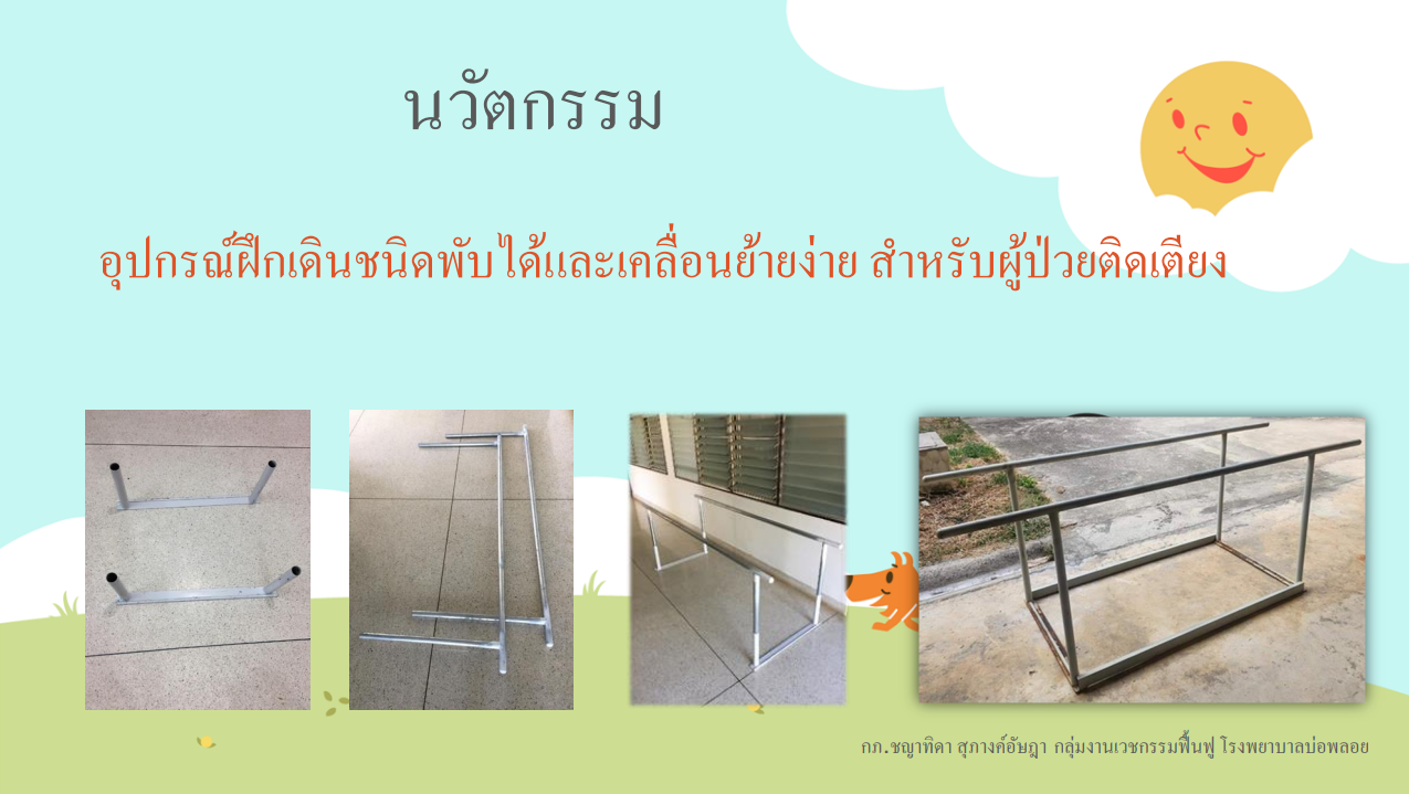 นวัตกรรม เรื่อง อุปกรณ์ฝึกเดินชนิดพับได้และเคลื่อนย้ายง่าย สำหรับผู้ป่วยติดเตียง